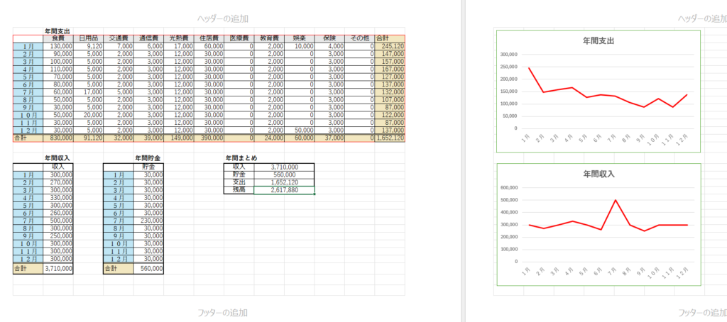 Excel 家計簿 年間テンプレート|月別収支をまとめて見える化